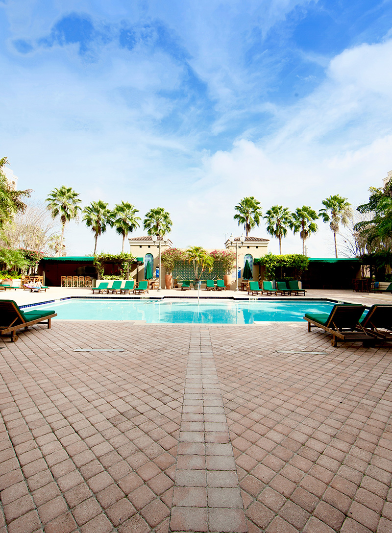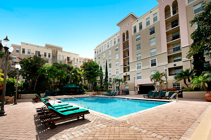 The clubhouse includes a massage room, yoga/pilates studio, cybercafe, pool and game room, business center, lounge and fitness center.